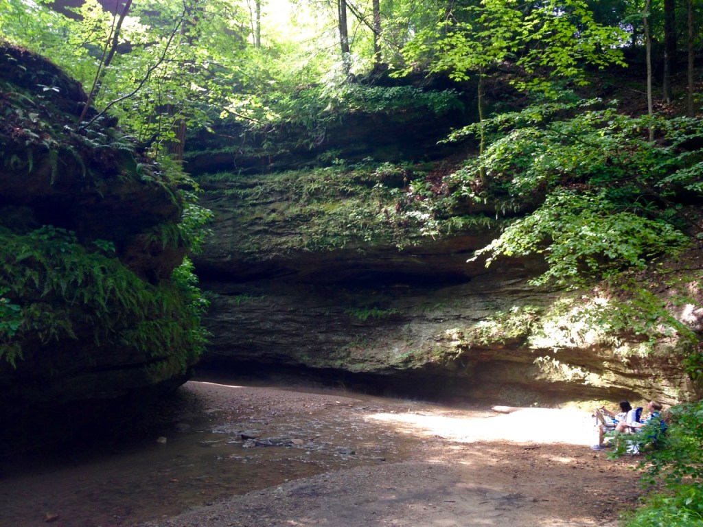 In late afternoon I was set up across the canyon from Big Clifty on a trail that provided a dramatic lookout over the sea of green canopy. Through a distant slit in the leaves you could catch a glimpse of Big Clifty’s distinctive rocky cliffs and falls. By now I was becoming more comfortable engaging with the steady stream of hikers who paused to take a breath after a steep climb out of the canyon. The muggy weather threatened rain all day but now the heat and humidity were building up for an afternoon thunderstorm so I was watching the skies closely.