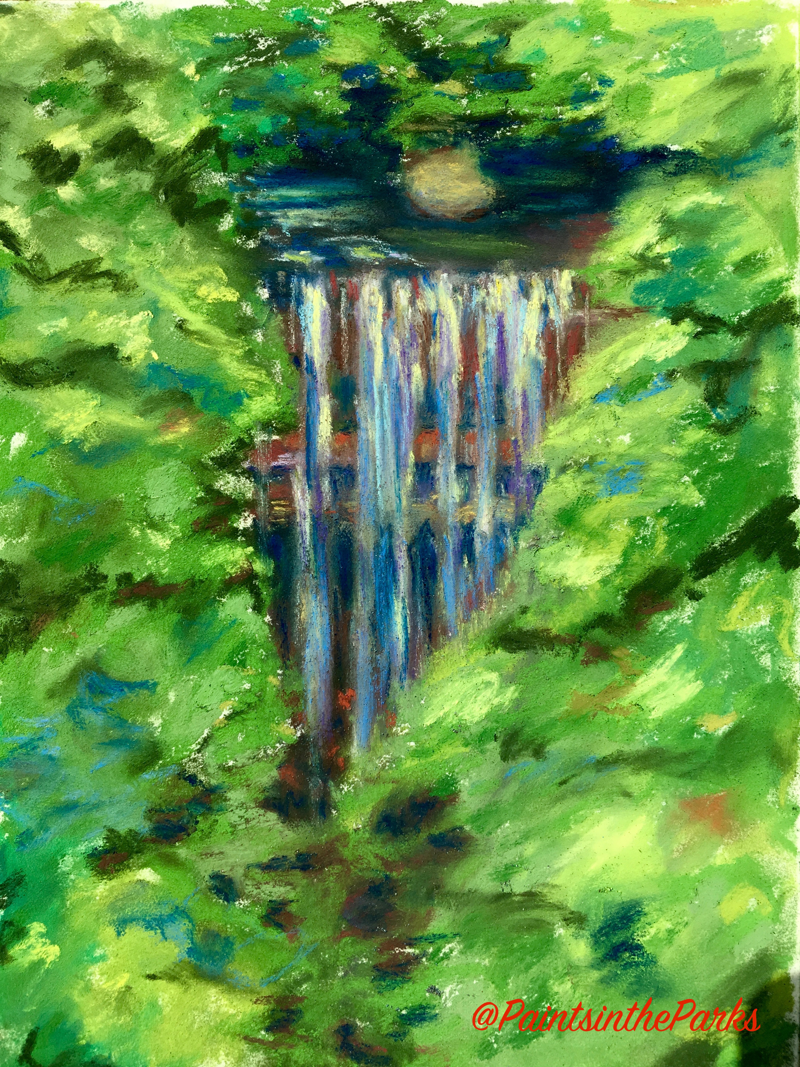 In the afternoon I spent a couple of relaxing hours at the Hesitation Point overlook working with a pastel on Ampersand board. The gritty texture grabs the chalk pastels nicely for more intense colors in the waning daylight. Many stopped by to talk about my painting and show me their artwork. It was a delightful and fitting way to wrap up my Arts in the Parks visits.